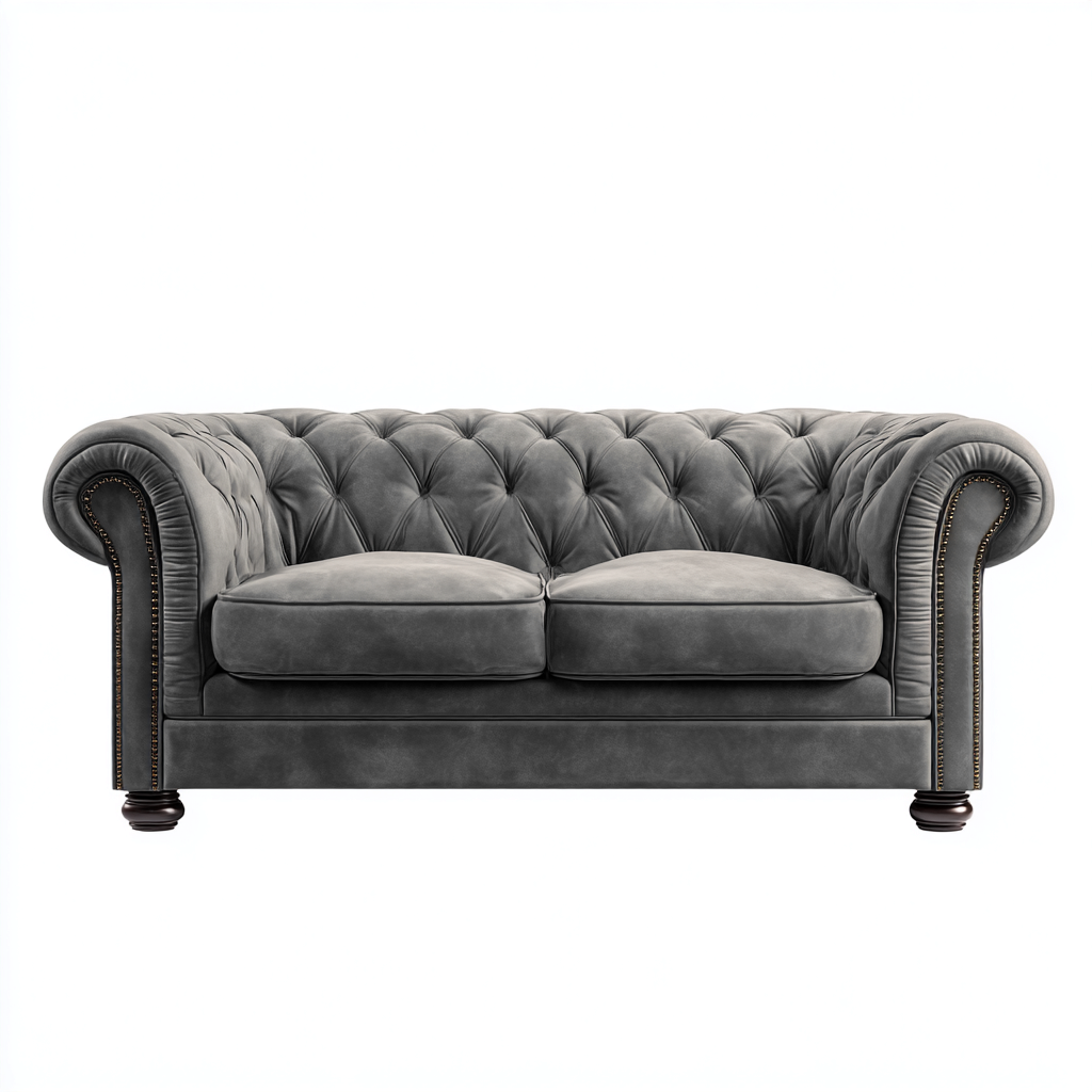 Canapé droit tissu velours 175x92x87 cm gris - style classique - pour salon