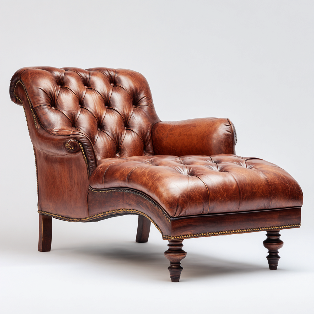 Chaise longue - cuir 165x75x90 cm - marron - adaptée au salon - design classique