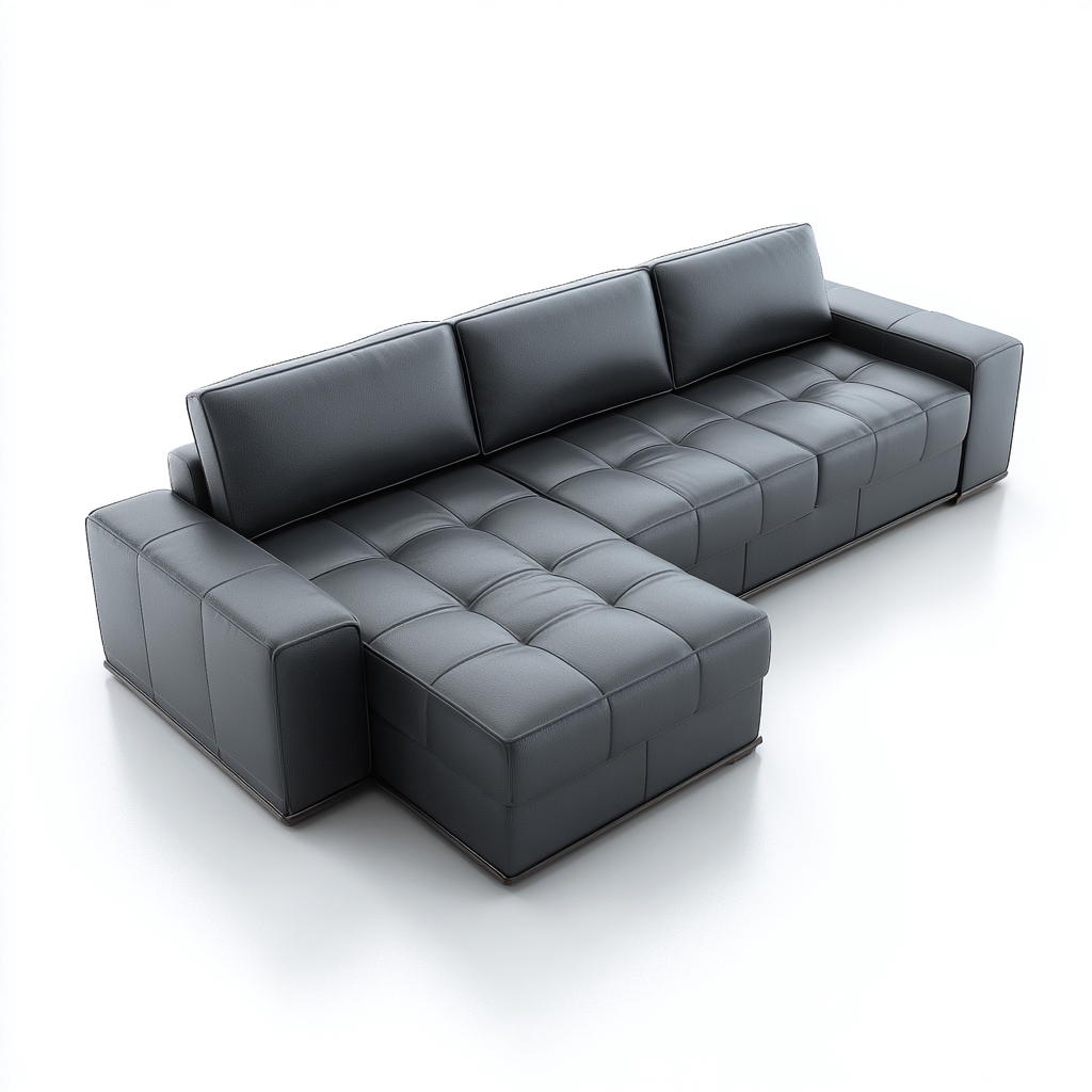 Ce canapé d'angle en cuir gris foncé se caractérise par un design moderne aux lignes structurées, idéal pour créer un espace de détente contemporain dans le salon. Son assise large et confortable offre un soutien adapté pour les moments de repos et de convivialité.