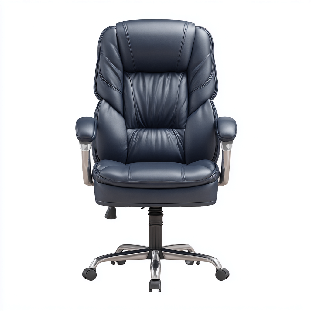 Cette chaise de bureau ergonomique au style moderne est conçue pour offrir un haut niveau de confort dans un espace de travail. Son revêtement en simili cuir bleu foncé et son rembourrage généreux apportent une assise douce et adaptée aux longues sessions de travail.