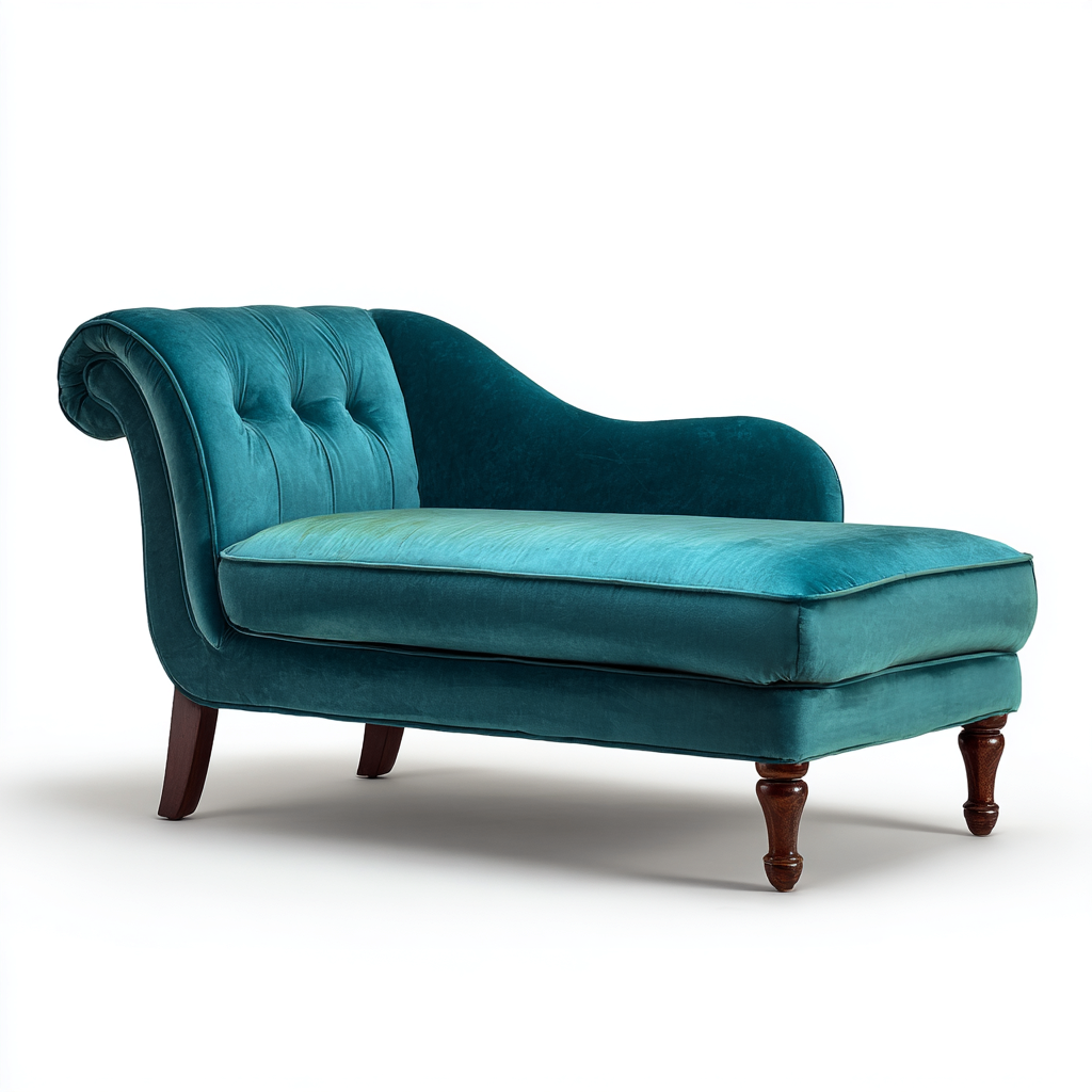 Cette chaise longue en velours bleu canard présente une esthétique élégante et intemporelle, idéale pour aménager un espace de détente raffiné dans le salon. Sa silhouette courbée et son assise généreusement rembourrée offrent un confort adapté aux moments de repos quotidiens.