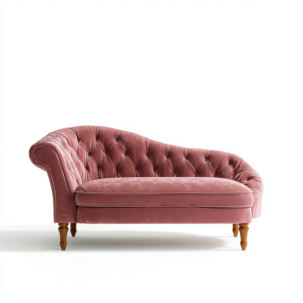 Cette chaise longue en velours rose se distingue par son allure élégante et son dossier capitonné, idéale pour créer un espace de détente raffiné dans un salon. Sa silhouette courbée et ses finitions soignées apportent une touche décorative chaleureuse.