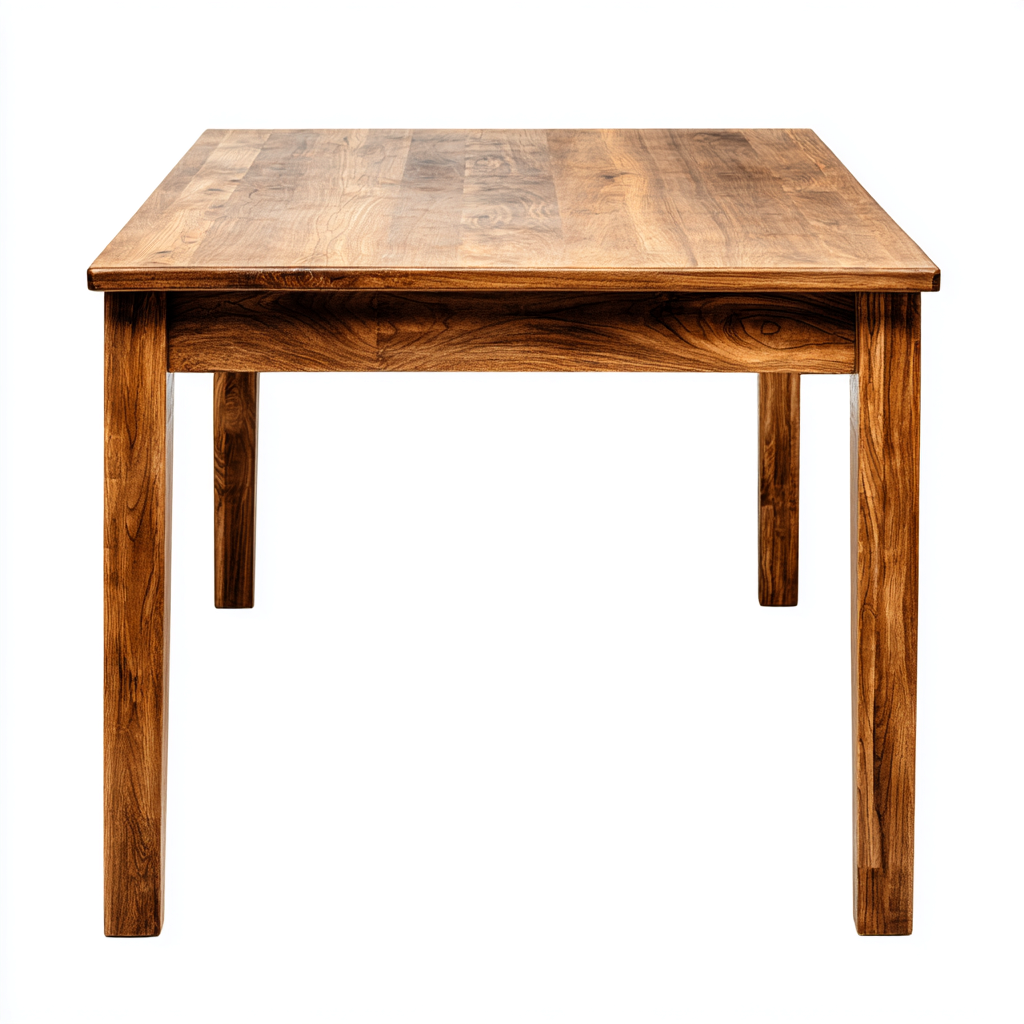 Fabriquée en bois massif, la table présente une finition naturelle qui met en valeur les veines et la texture du bois. La construction solide garantit une durabilité et une stabilité à long terme.